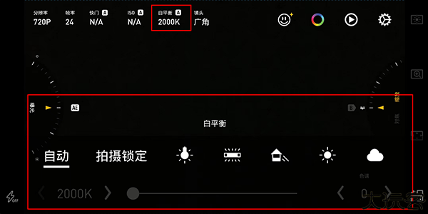 6、最关键一步:白平衡 点击:钨丝灯(有些是不可以调解的 如果可以调节的话 可以调调色温) 可以拿起手机旋转,找到合适自己的角度