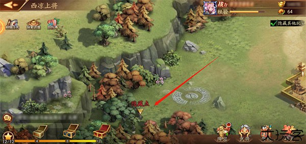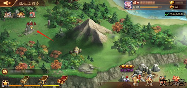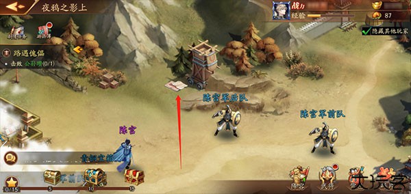 本章隐藏点为线索事件,需要先拿到线索才能触发,线索位于地图上方的山脚下,拾取散落的纸页,根据指示来到地图左下方貂蝉右侧石阶旁的山脉,即可触发隐藏点。