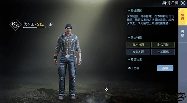 伐木作为大世界必备技能,伐木工身份备受幸存者青睐。伐木工的特色技能能够大幅度减少伐木时的消耗,并且获得高级材料的几率也大大增加,特有的木工图纸能够让你制造出许多特色木质家具。