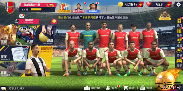 1、球队经营:经理人可以在游戏主界面中前往各个玩法和功能,通过建造功能经营自己的球队,提升球队的收入、规模,并且能够为球员提供良好的成长环境