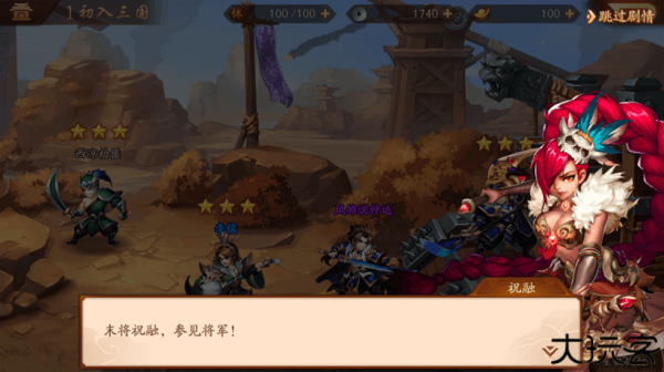 就这样,四人小队跌跌撞撞,一路闯关!不知少年是不是在想,既然祝融已经入队了,那么孟获跑到哪里去了?果然,还没推几张副本,孟获就开始坐不住了,在第三章的时候,孟获出现了!我方阵营又收入一名大将!还差一人就集齐了!可惜等级还不够,抓紧努力升级吧!