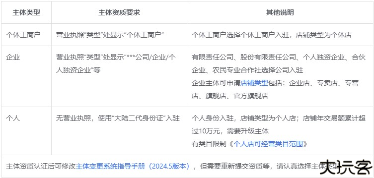 根据您所具备的资质,或者经营需求,申请相应的开店主体(个体、企业、个人):