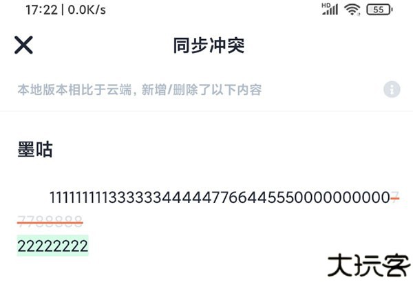 点开查看详情,按颜色提示进行查对,最终选择内容无误的本地版本或云端版本进行保留。