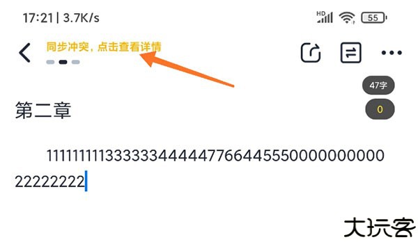 此问题可能是云端内容和本地内容产生冲突,或多端内容冲突,比如两个客户端同时在写的时候,就有可能会产生内容冲突。以下示范以手机端为例,电脑端基本同理: