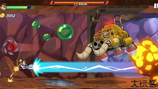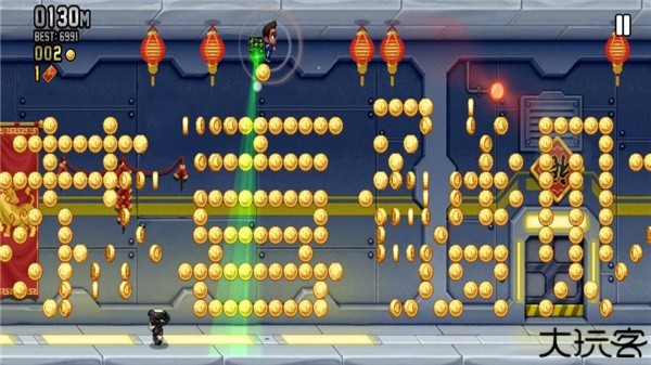 游戏中的Jetpack动力不是传统的燃料动力,你要利用不断发射的子弹来作为上升飞行的动力,玩家要在其中用手指按触屏幕上的任何一个可触发控制的位置灵活的进行操作,灵活的操作在游戏中是非常重要的是,整个逃亡路上你不仅仅要避开各种不同的障碍还要消灭敌人。