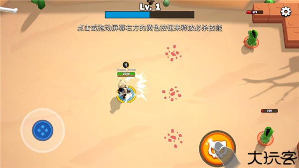 6、点击或拖动屏部右方的黄色按钮来释放必杀技能;
