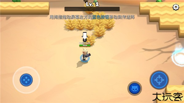 4、用揭指拖动屏第左方的蓝色按钮移动到传送阵;