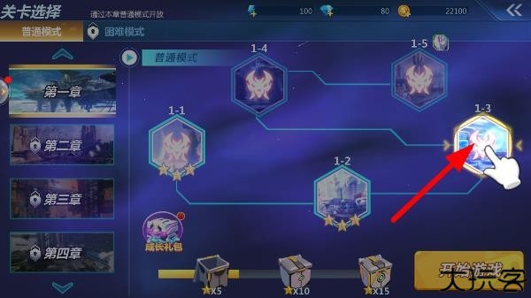 2、点击关卡,游戏前期会有引导