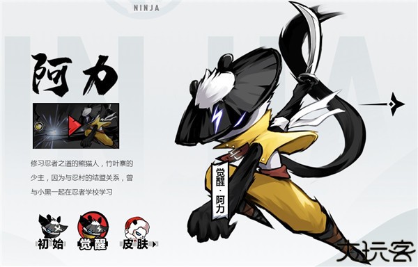 修习忍者之道的熊猫,曾与小黑一起在忍者学校学习。