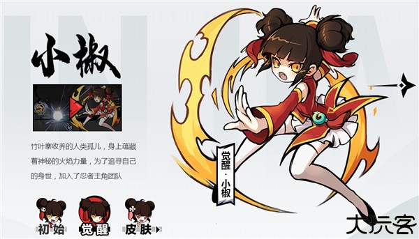 竹叶寨收养的人类孤儿,身上蕴藏着神秘的火焰力量,为了追寻自己的身世,加入了忍者主角团队。