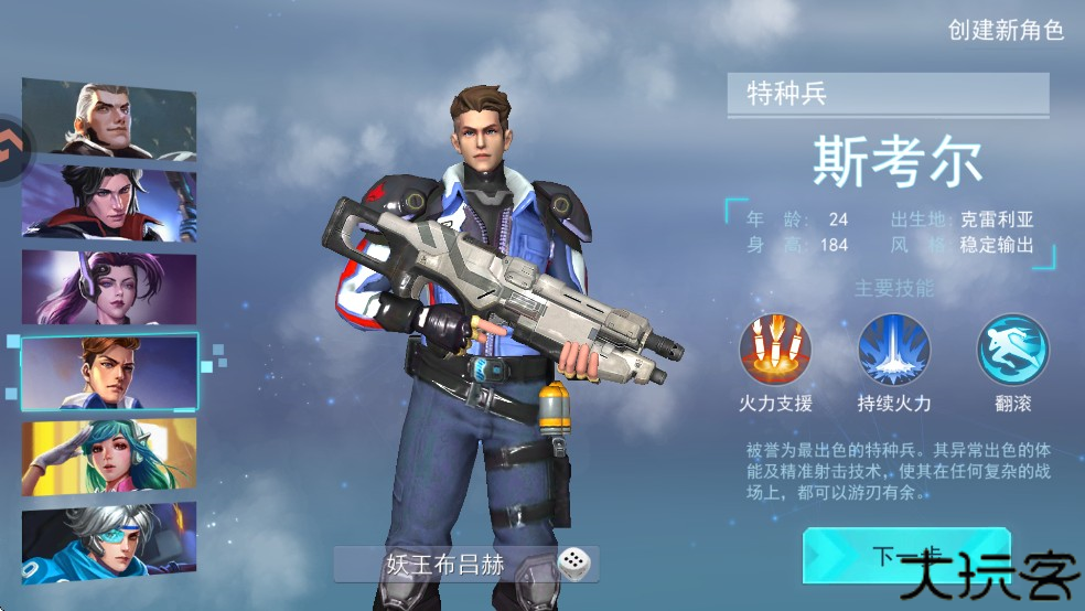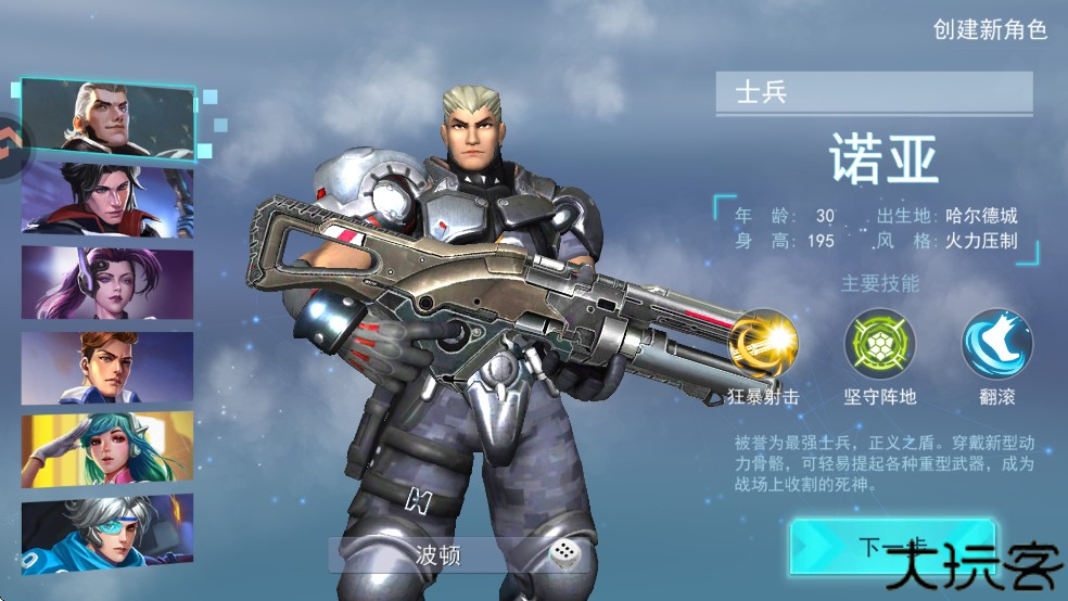 被誉为最强士兵,正义之盾。穿戴新型动力骨骼,可轻易提起各种重型武器,成为战场上收割的死神。