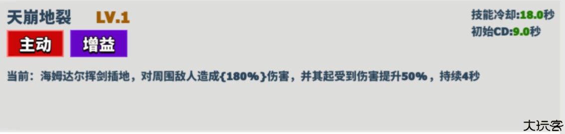 描述: 挥剑插地,对周围的敌人造成{180%}伤害,并使其受到伤害提升50%,持续4秒。