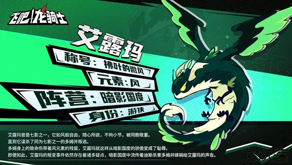 【遵从王的意志,七影中的三位——艾露玛、迪斯、多姆,共同执行前往调查世界尽头的任务。出发前,三龙意气风发。然而返程时,却只有迪斯带回多姆的尸身。多姆身上的致命伤带着风元素的残留,艾露玛就这样从暗影国度的骄傲变成了耻辱。即便如此,艾露玛的叛变事件依然存在着诸多疑点,暗影国度中流传着迪斯杀害多姆并嫁祸给艾露玛的声音。温柔的微风就这样离开了暗影国度,曾今深受同胞敬重的艾露玛再也未出现在族人面前。相传,在重重迷雾的背后,是它和迪斯达成的某项重要协议。】
