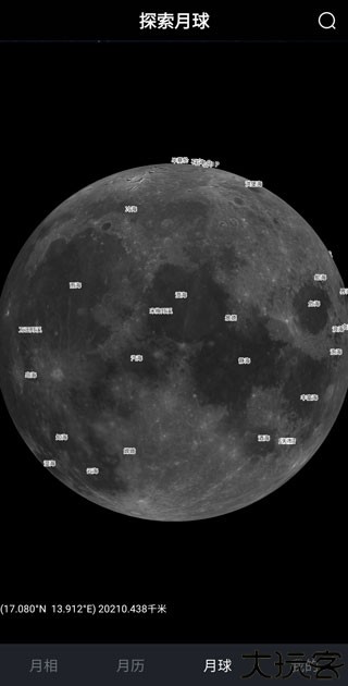 可任意旋转、放大、缩小,清晰观察月球表面结构。