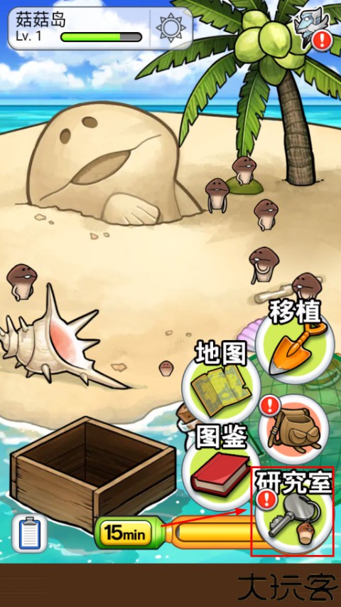 1、首先打开菇菇栽培研究室游戏,进入游戏后,点击右下角背包,然后点击研究室。