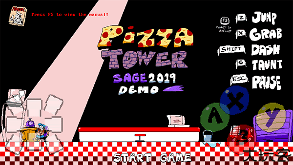 1、首先打开披萨塔汉化版,选择start game,点击A键开始游戏;