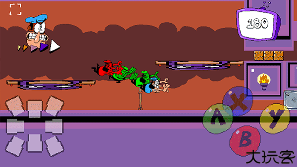 1、披萨塔是一款卡通风格快节奏平台动作冒险游戏,扮演滑稽的胖胖意大利中年男子;