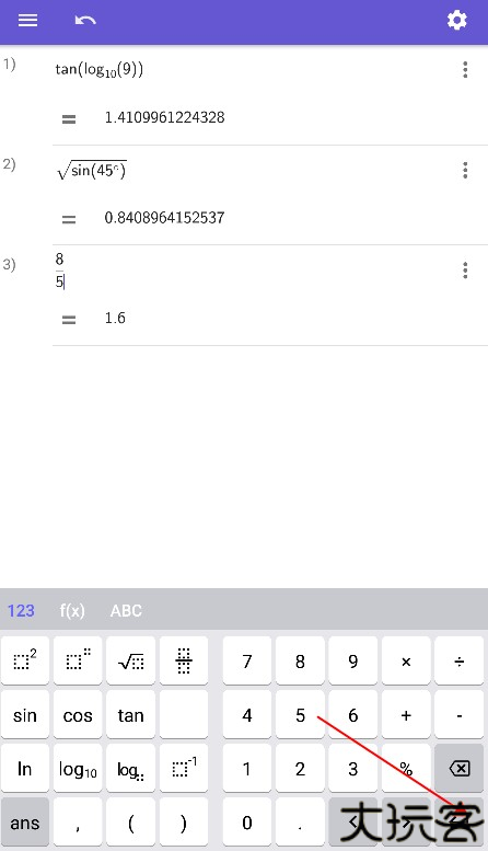 2、在下面键盘上输入等式,然后点击回车就会立即得到结果。