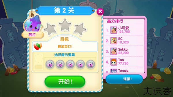 3、美味的糖果和绝妙的组合:将 4 颗糖果组合成方形,即可获得一条糖果小鱼匹配7颗糖果即可获得有惊人效果的着色糖果,将4颗全新的紫色糖果排成一排,即可形成绚丽的效果