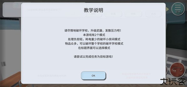 6、总之在游戏中玩家可以随意的破坏,里面有有两个模式可以体验,处理负担轻,耗电量少的破坏小房间模式。物品众多,可以破坏整个学校的破坏学校模式,玩家可以随意选择。