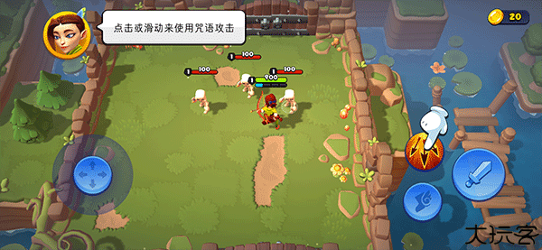 5、除了普通攻击,还可以使用技能,点击或滑动来使用咒语攻击