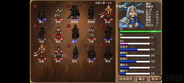 1、华丽的特效、丰富的战棋元素。40个大兵种,剧情可得83件宝物,各具特色特效。我方所有武将拥有个性特技,战场角色定位明确。