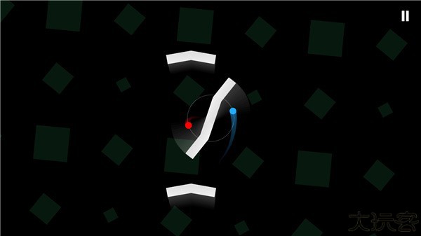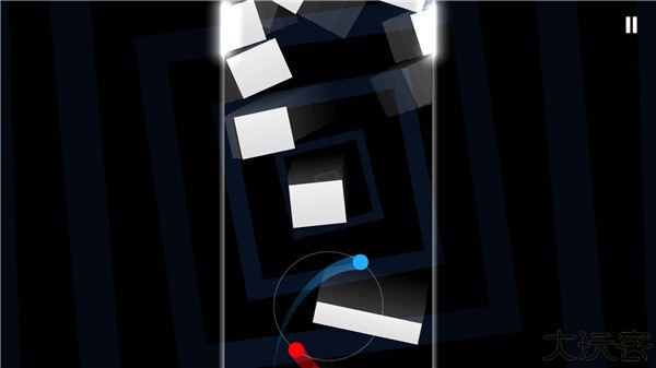 小编还是那句话:上手容易精通难的游戏才是好游戏。二重奏也是,点击屏幕左侧,则两个圆球绕着白色的轨迹逆时针旋转,右侧则是顺时针。在旋转中不断避开下落的白色方块。看似简单,但是想要玩的好,难,很难,非常难。