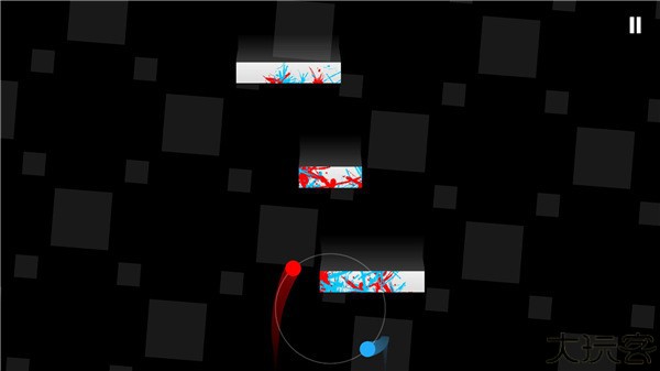 游戏操作虽然非常简单,只需大家通过点击屏幕便可完成,但玩法却充满了挑战,非常需要大家开启抽象思维来思考问题,不断下落长短不一的方块,而我们要做的就是操控圆圈转动,保持不然红点或者蓝点触碰到方块,否则游戏就将残忍的结束。