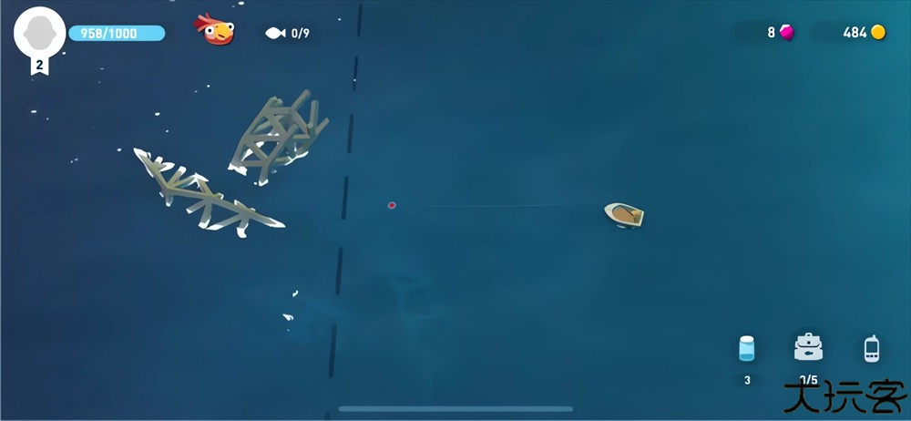 如果你发现游戏将相机移近浮标的位置,就可以判断有鱼上钩,此时红色浮标开始上下浮动。将手指靠近屏幕,但不要按压它,直到浮标完全沉入水中并发出水波纹。因此一旦游戏相机放大,请不要将视线从它身上移开。
