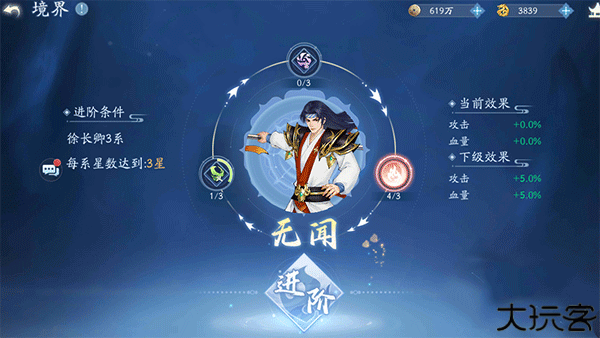 后面要提升的就是将那些没到三星的提升上去,这个是大家在激活三种属性以后才需要考虑的,因为这三个属性是直接会关系到角色的境界提升的。而这里的境界就是需要这些属性都达到三星才可以,也只有这样各位才能从中获取到更多的加成提升。