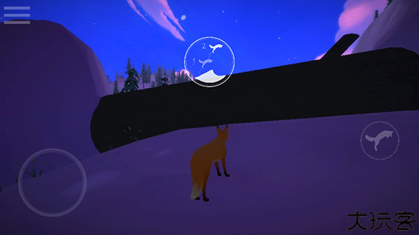 2、操作非常简单,左侧隐形轮盘移动狐狸,右侧可以互动、跳跃、移动镜头,点击继续;