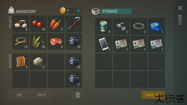 NPC:衣服、武器、工具、背包、身份卡、食物、资源