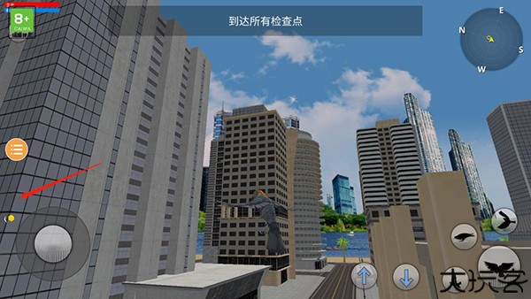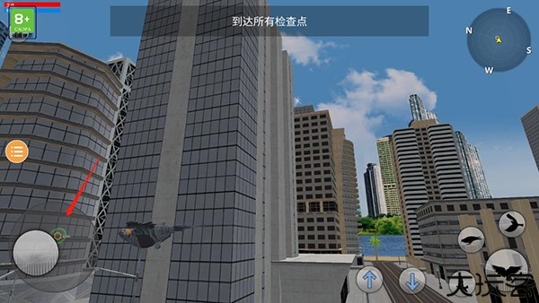 6、找不到检查点的时候可以看地图指示,观察图上的箭头指示;