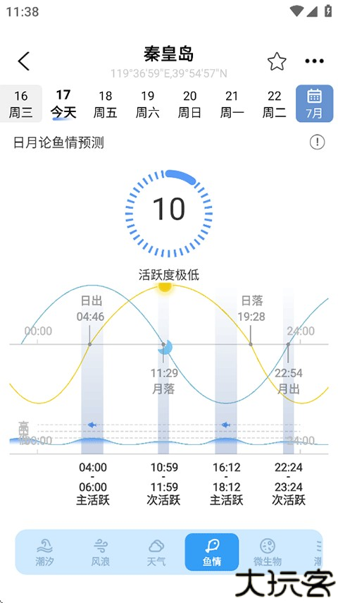通过算法分析潮汐与月龄,为钓鱼用户推荐最佳出钓时机。