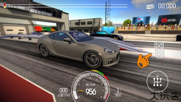 在游戏上我讲解下如何操作,这款游戏是直线竞速,没有弯道等障碍物, 减少了难度。而且在操作上也非常简单,不需要重力感应,在游戏中你只需要在开头的时候点击屏幕加速就OK了,在达到一定的速度在换挡。