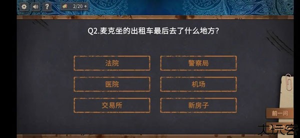此时再看目的地,即可排除机场、海底,因为麦克未离开城市。剩下两项问完得到是警察局。