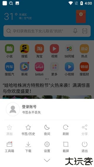 4、点击菜单,你可以登录浏览器账号和调整浏览器设置;