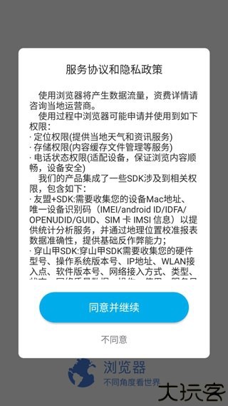 1、在本站下载安装并打开微米浏览器,点击同意;