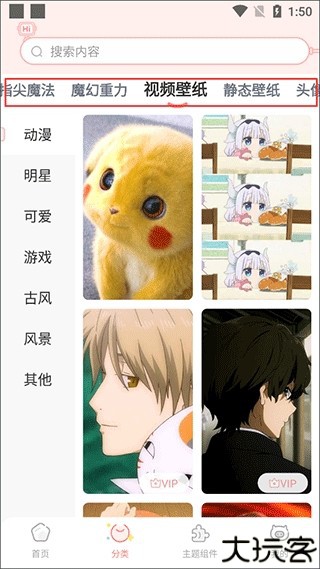 1、软件内包含了许多分类,如视频壁纸、动态壁纸等等,可供用户任意选择喜欢的做壁纸;