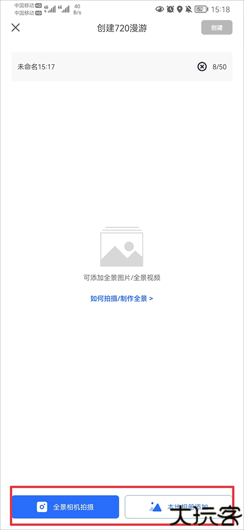 2、进入后,用户可以点击全景相机拍摄全景图,也可以点击本地相册添加拍摄的全景图照片来进行制作,例如本地相册添加