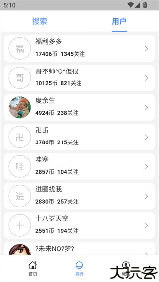 4、切换到用户,可以看到分享资源比较多的热门用户。