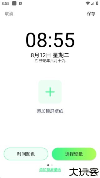 4、点击主题DIY后可以进行添加锁屏壁纸、选择壁纸、时间颜色,然后进行导入各类信息,最后保存即可。