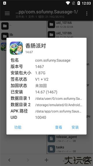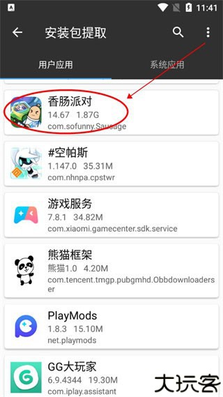 2、找到并点击自己需要提取安装包的游戏(小编以香肠派对为例);