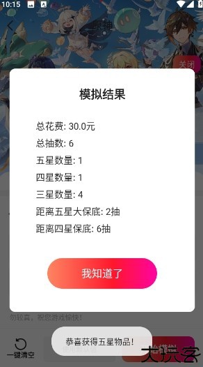 然后自定义设置好已抽抽数以及保底设置,点击“开始模拟”。