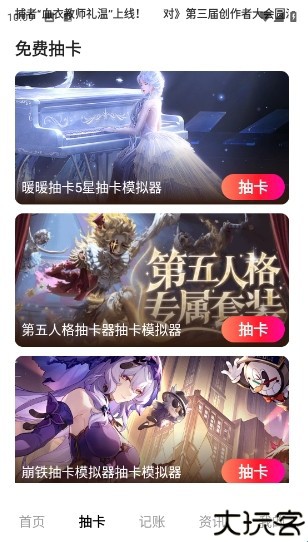 任意选择一个抽卡类型,这里小编以“原神5星抽卡模拟器抽卡模拟器”为例。