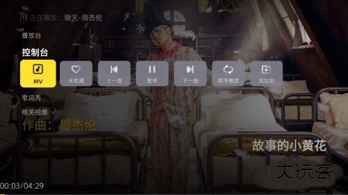 1、打开当贝酷狗音乐tv版,随便找个VIP付费音乐,就以周杰伦的代表作晴天为例。