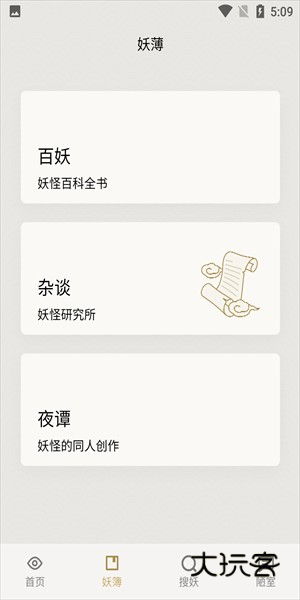 2、点击妖簿可以看见百妖全书、杂谈、夜谭等等。