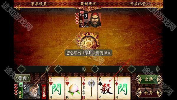 5、进入游戏中首先出杀牌,然后其它牌才可以出
