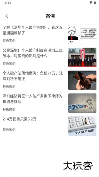 2、“特色案例”可查看个人破产条例学习经典案例知识要点,加深自我学习了解。