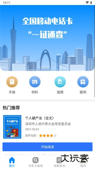 1、下载安装一证通查后,打开进入首页,可以看到推荐的手册资料以及用户指南。